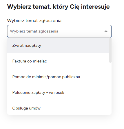 2. Jeśli masz więcej niż jeden licznik, wybierz odpowiednie konto fakturowe.